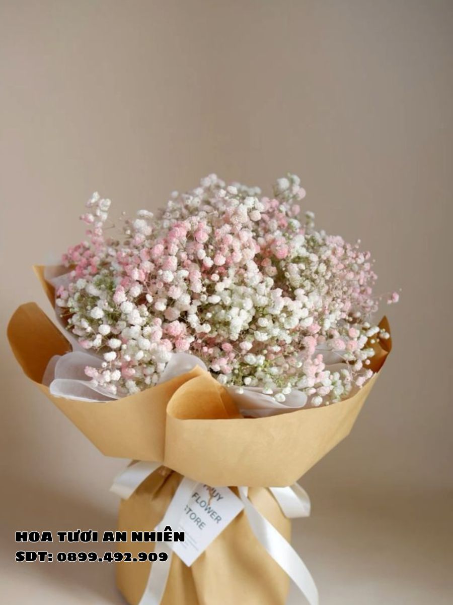 Ngược lại, hoa baby (Gypsophila) lại mang vẻ đẹp nhẹ nhàng, mong manh như những bông tuyết nhỏ. Loài hoa này tượng trưng cho sự thuần khiết, tình yêu vĩnh cửu và sự chân thành. Hoa baby thường được yêu thích bởi phong cách tối giản, hiện đại và khả năng giữ độ tươi rất lâu, thậm chí có thể làm hoa khô trang trí.